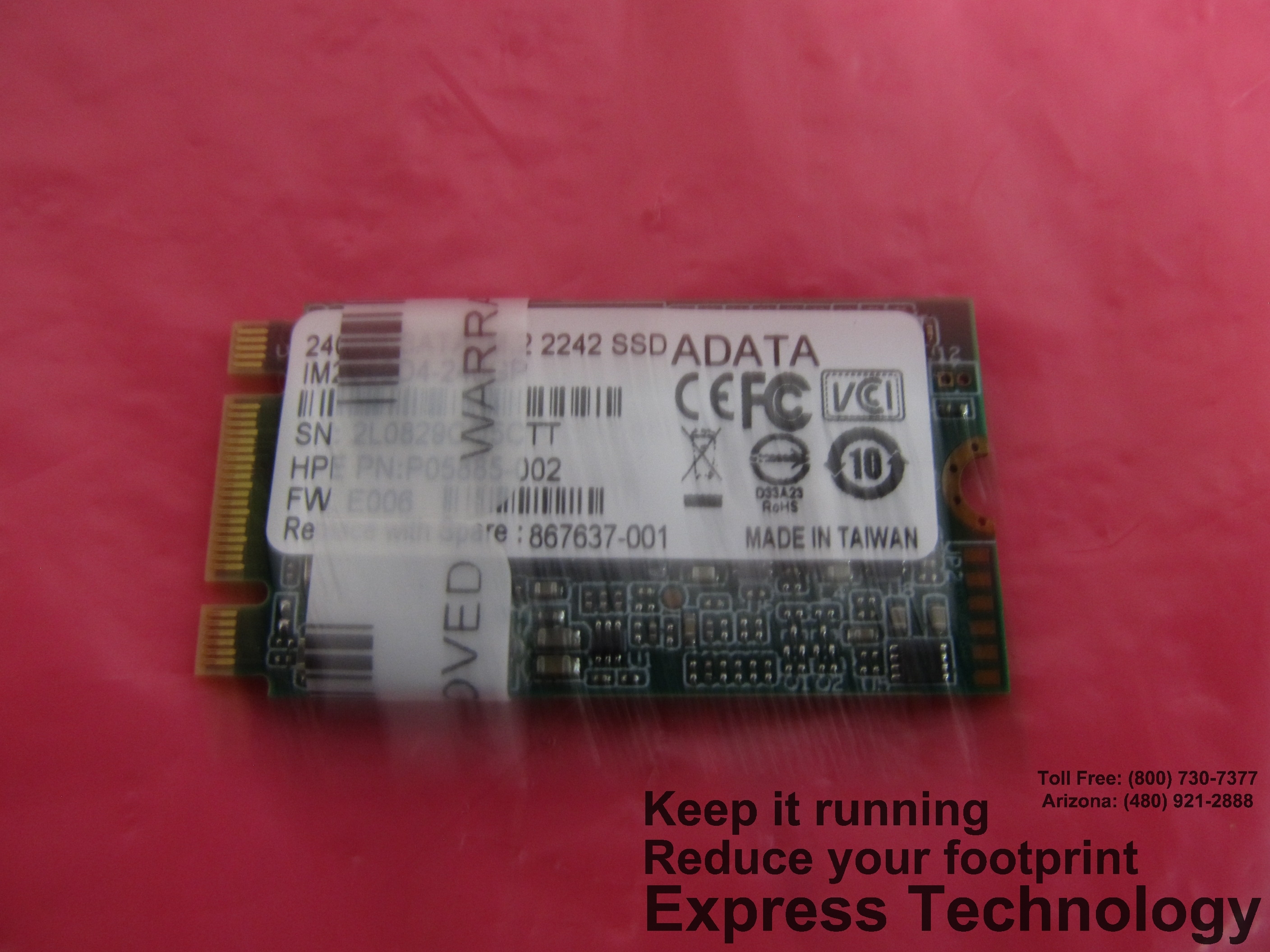 Hewlett-Packard ® 240GB SATA Solid State Drive (SSD), 6G, M.2 2242 Category: OEM Condition: Refurbished Quantity: 1 Product Type: Hard Drive Status: IN STOCK Price: $CALL |