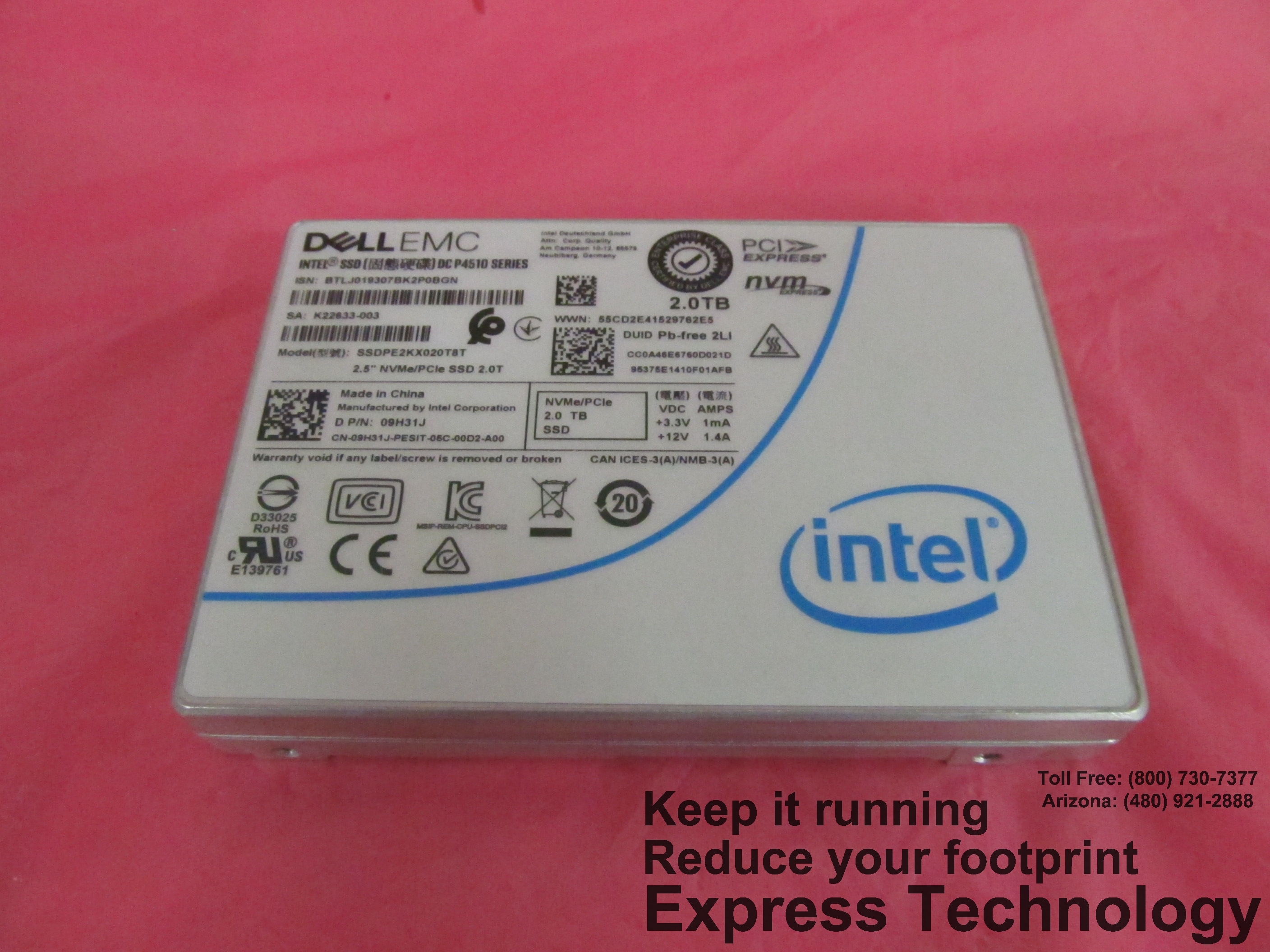 Dell, Inc ® Solid State Drive,2TB,NVME,Peripheral Component Interconnect Express,2.5,P4510,Z Category: OEM Condition: Refurbished Quantity: 2 Product Type: Hard Drive Status: IN STOCK Price: $CALL |